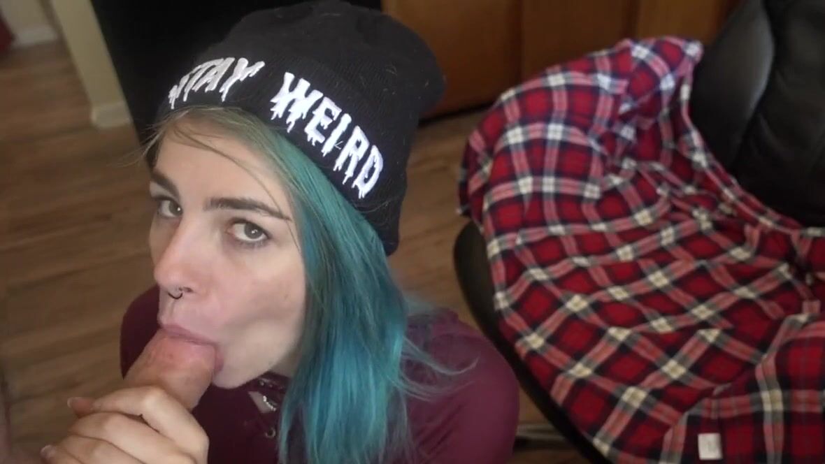 Сладкий домашний минет для парня от молодой неформалки в шапочке