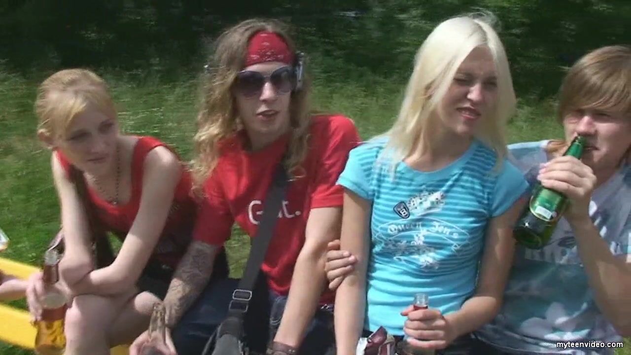 Деревенские гопники подцепили трех телочек из соседнего ПТУ и отправились с ними посидеть в уединенном месте. Парням даже тратиться не пришлось особо – их новые подруги сами накупили пива и чипсов, это все быстро употребили и в конечном итоге сами того не заметили, как перестали контролировать свои сексуальные желания. Сообразив, что сейчас настал идеальный момент, пацаны взяли подруг под ручку и повели их на ближайшую хату, где вся компания от души повеселилась. Девочки в этот вечер попробовали трах со многими парнями и друг с другом.