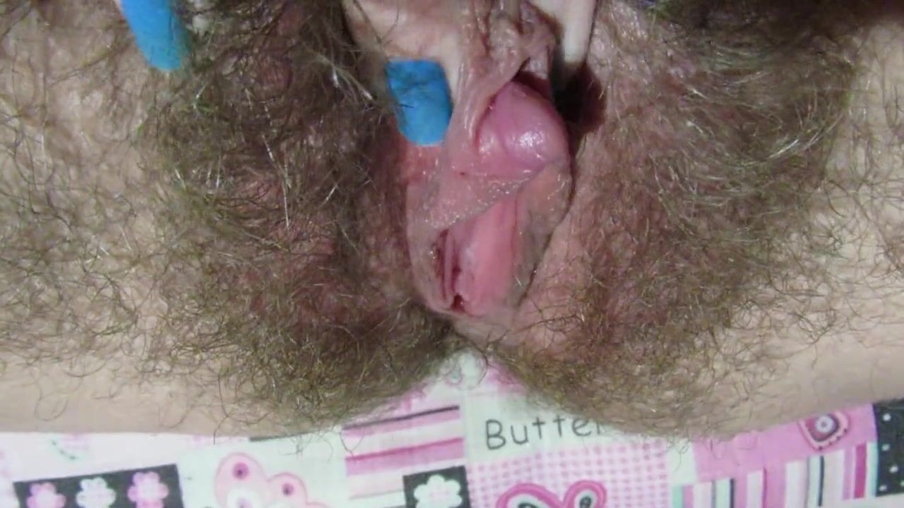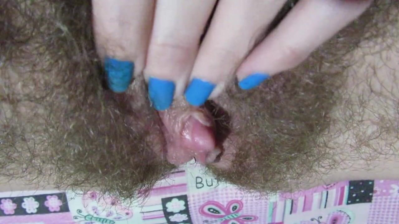 Волосатая пизда и клитор мастурбирующей телки - крупным планом