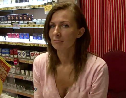 Мужчина уже не первый раз заходит в этот магазин и только ради этой женщины, она очень нравится ему и в его мыслях всегда было желание однажды выебать её прямо в магазине. Когда у мужика появились бабки он решил купить продавщицу предложив ей заработать за 5 минут минета 11000 крон. Так как такие деньги женщина зарабатывает за месяц, она не смогла устоять и все таки согласилась. После того как она отсосала член и заработала свои честно отработанные деньги, мужик предложил ей еще 10 штук только теперь за еблю с ним. Так как кассирше нечего было уже терять то она согласилась и дала выебать себя рачком и хорошенько попрыгала на его большом члене пока мужик не кончил ей на маленькую но такую женственную грудь. Этот день оттраханная киска будет помнить еще долго.